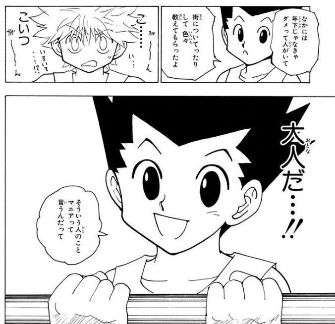 魅力的なキャラが多すぎるってのもあるんやろうけど、なんとなく親しみにくいよな、最初は野生児でわかりやすい感じで人気やったけど、ゴンさんとかめっちゃ怖いやん